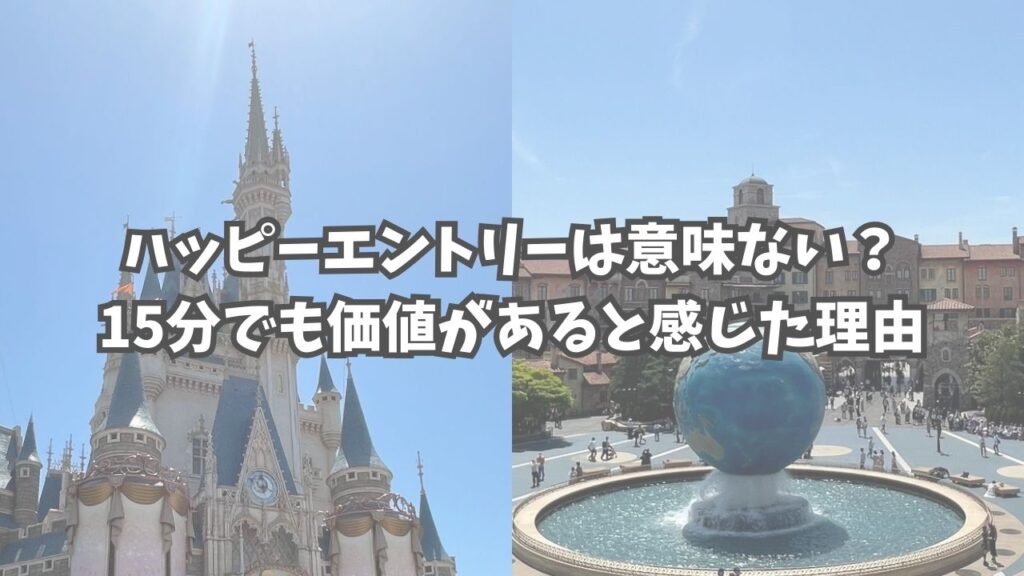 ディズニーホテル宿泊の特典で、一般入園より早く入園できるハッピーエントリーですが、「ハッピーエントリーは意味ない」という言葉を見かけることがあります。一般入園より早く入れる時間は15分ほど(ディズニーシーの場合は5〜15分)のため、この短さか... -